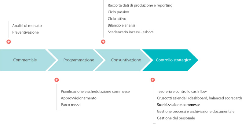 Tutta la copertura funzionale di cui hai bisogno per razionalizzare i tuoi processi aziendali e ottenere i migliori risultati nella gestione delle commesse.