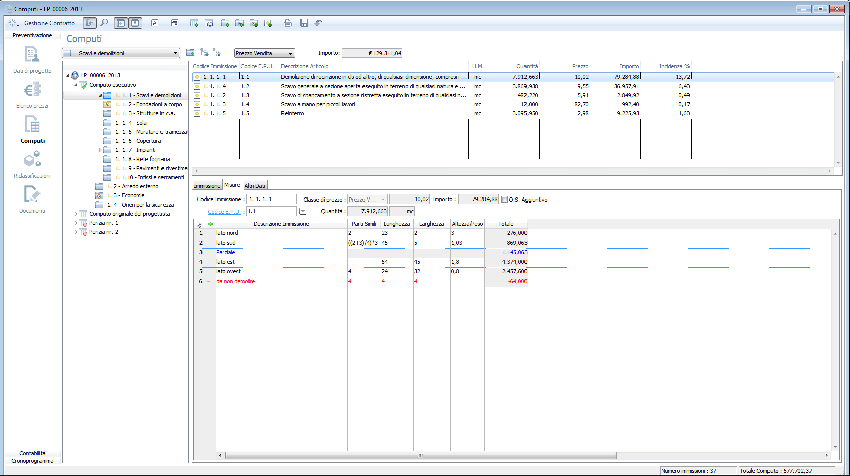 Preventivazione e contabilità lavori.